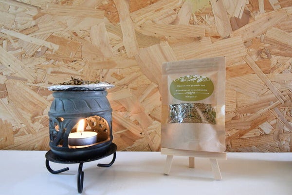 Daar om is een Olie brander het meest geschikt voor deze mixen. En wilt u de geur en werking ervan wat intenser ervaren gebruik dan een wierookbrander met een gaasje maar vouw er dan een stukje aluminium folie om het gaasje zo dat de mix beter blijft liggen en er niet door heen valt. Wild u het op kooltjes branden dan verandert er niks.